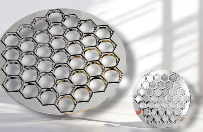 תבנית עגולה להכנת רביולי או כיסוני בצק בקלות ובדיוק מרבי.