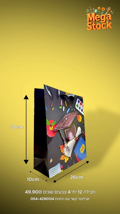 תיאור מוצר: שקית מתנה צבעונית עם איורים של מחברות, ספרים, צבעים ושלל פריטים מעולמם של תלמידים – מושלמת כאריזת מתנה לסוף שנה או חזרה לבית הספר